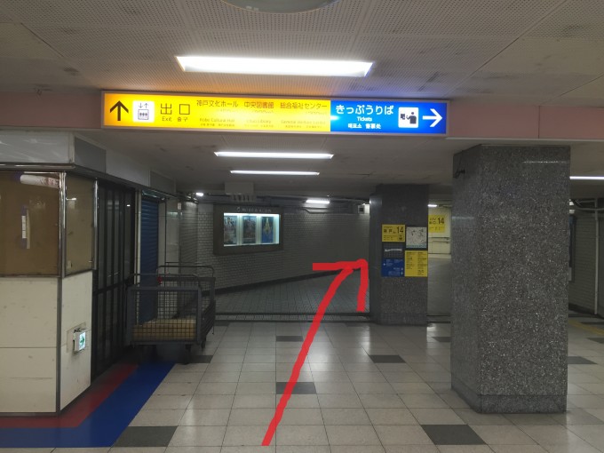 ③ 写真の様な広場に出ますので矢印の方向(高速神戸駅方面)にお進み下さい。