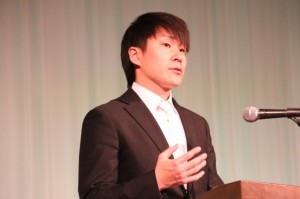 成功の秘訣を日本語と英語で話してくれました。