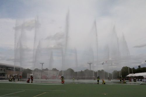 • 一斉放水訓練:迫力満点!連携力が試される訓練