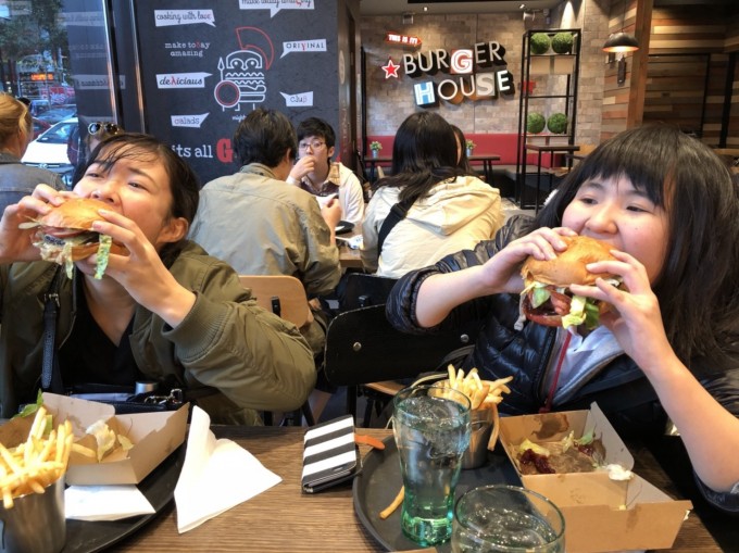 そして、ボリューミーな海外サイズのハンバーガーをほおばり記念撮影♪