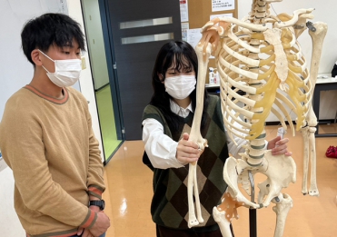 1年生の後期になると、骨標本を使って筋肉を覚えるように取り組んでいます!
