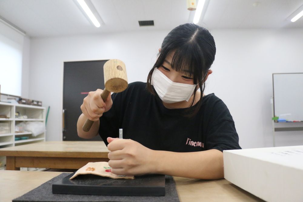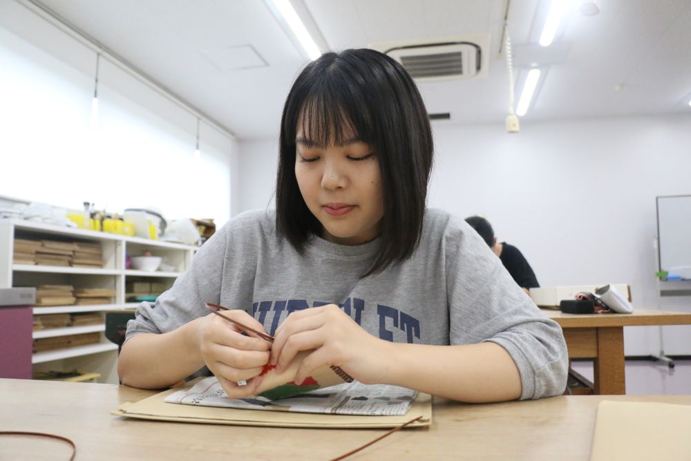 本校の作業療法士科では、授業で様々な「作業」を体験します。その中の一つが、この「革細工」です。