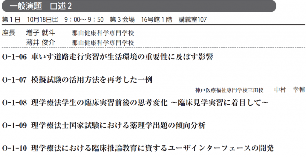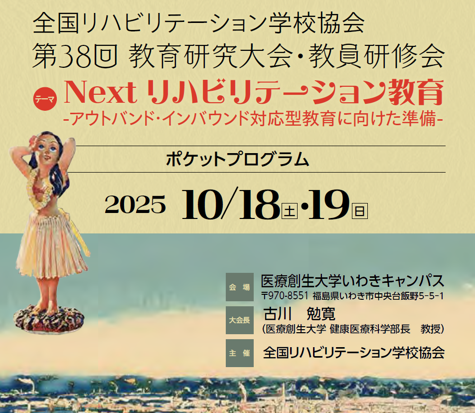 さて、今年も全国リハビリテーション学校協会が主催する教育研究大会・教員研修会(通称:教員の学会)が福島県いわき市で10/18・19に開催されました。1年に一度、全国の大学や専門学校の教員が集まる貴重な学会です。