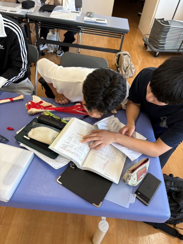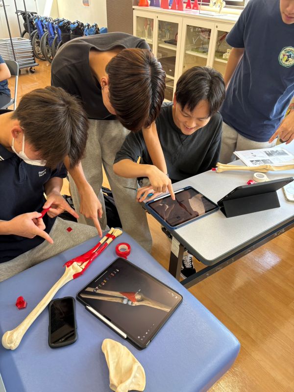 「この筋が収縮したら、関節はどっちに動く?」と、クラスメイトと相談しながらテープを引っ張って動きを確認していきます👀✨