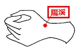 ツボのとりかた:手首の関節、親指のつけねのクボミ。